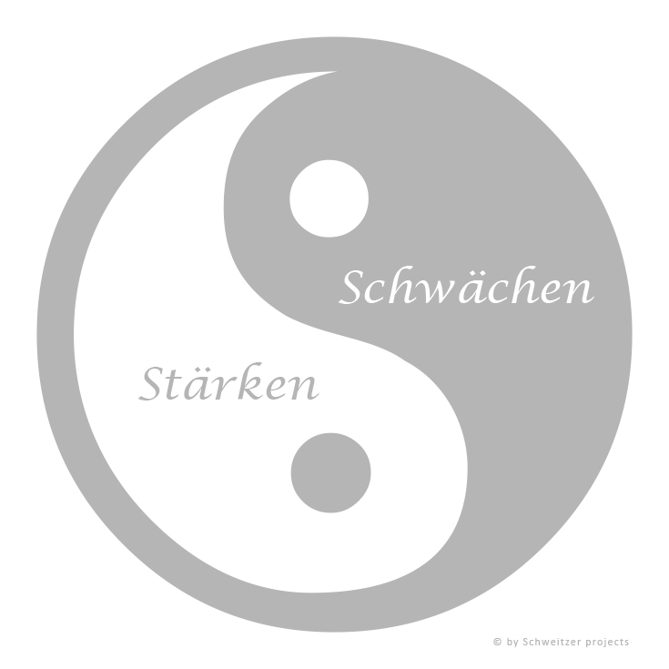 Wenn also in einem Vorstellungsgespräch nach deinen „Schwächen“ gefragt wird, macht dies tatsächlich Sinn. Schön wäre es also, wenn du dir der Kehrseite deiner jeweiligen Stärke bewusst bist und Methoden und/oder Techniken präsentieren könntest, die diese Schwächen ausgleichen oder abmildern können. Zumindest solltest du dich als jemand zeigen, der sich dessen bewusst ist und für sich sorgt.